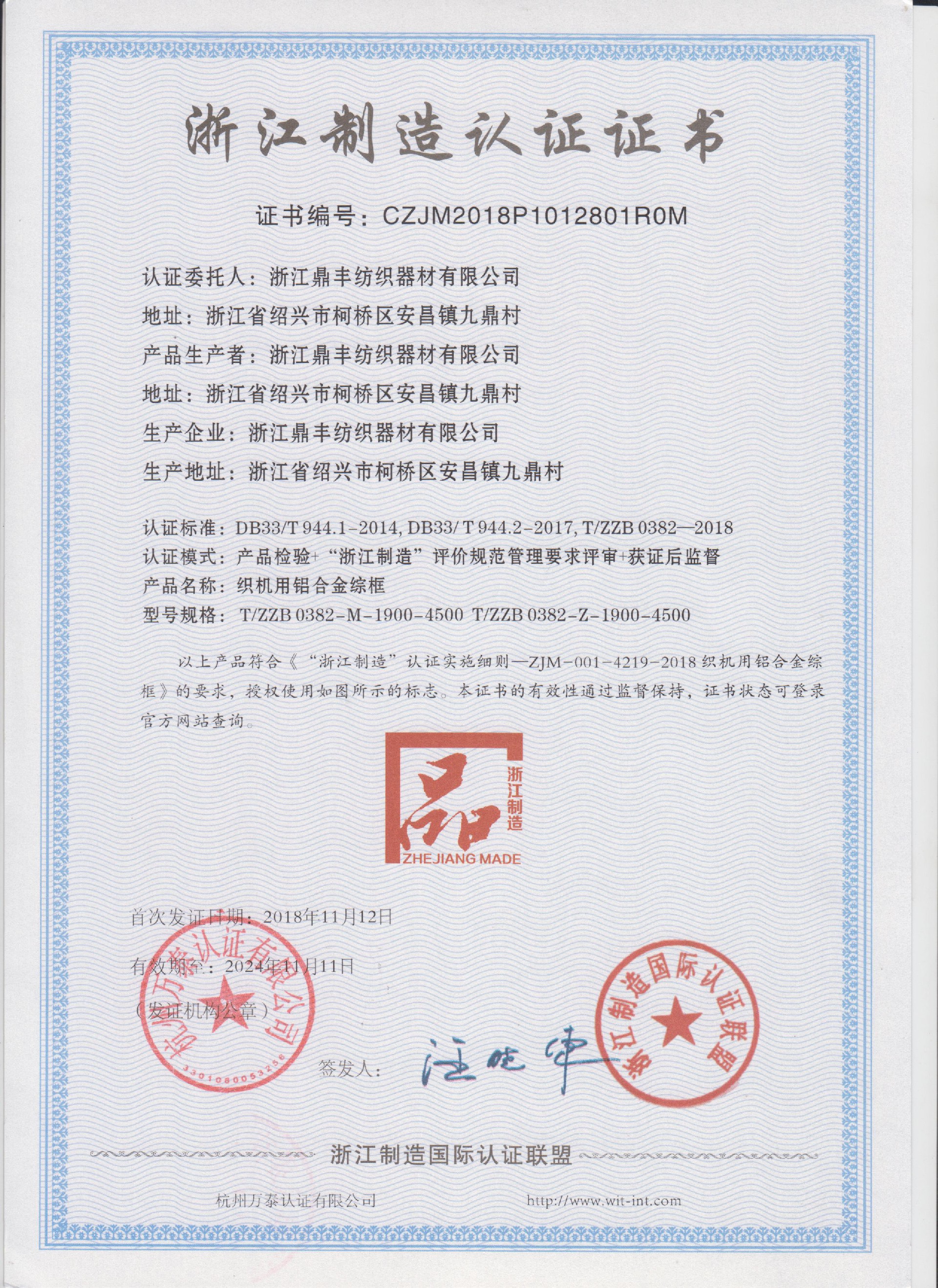 浙江鼎豐紡織器材有限公司始建于1986年,是一家專業(yè)生產(chǎn)各類(lèi)無(wú)梭織機(jī)用鋼筘:噴氣筘、噴水筘、劍桿筘、其他類(lèi)型鋼筘;鋁合金綜框、鋼片綜、停經(jīng)片、經(jīng)軸、織軸、卷布輥等產(chǎn)品及配件的民營(yíng)企業(yè)。